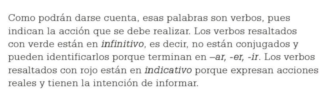 La receta “Papas en gajos” utiliza los verbos en infinitivo. Recordemos que se llama infinitivo a la forma verbal que se emplea para nombrar un verbo. El infinitivo no expresa número, persona gramatical ni tiempo. Por ejemplo: cocer, pelar, exprimir, hornear, mezclar, batir…