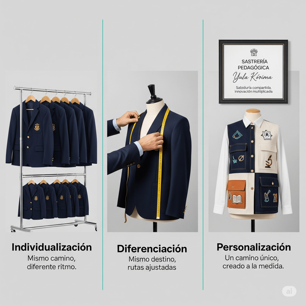 ¿Cómo se ve esta sastrería pedagógica en el día a día? Se sostiene sobre cuatro pilares fundamentales que transforman la estructura tradicional del aula: